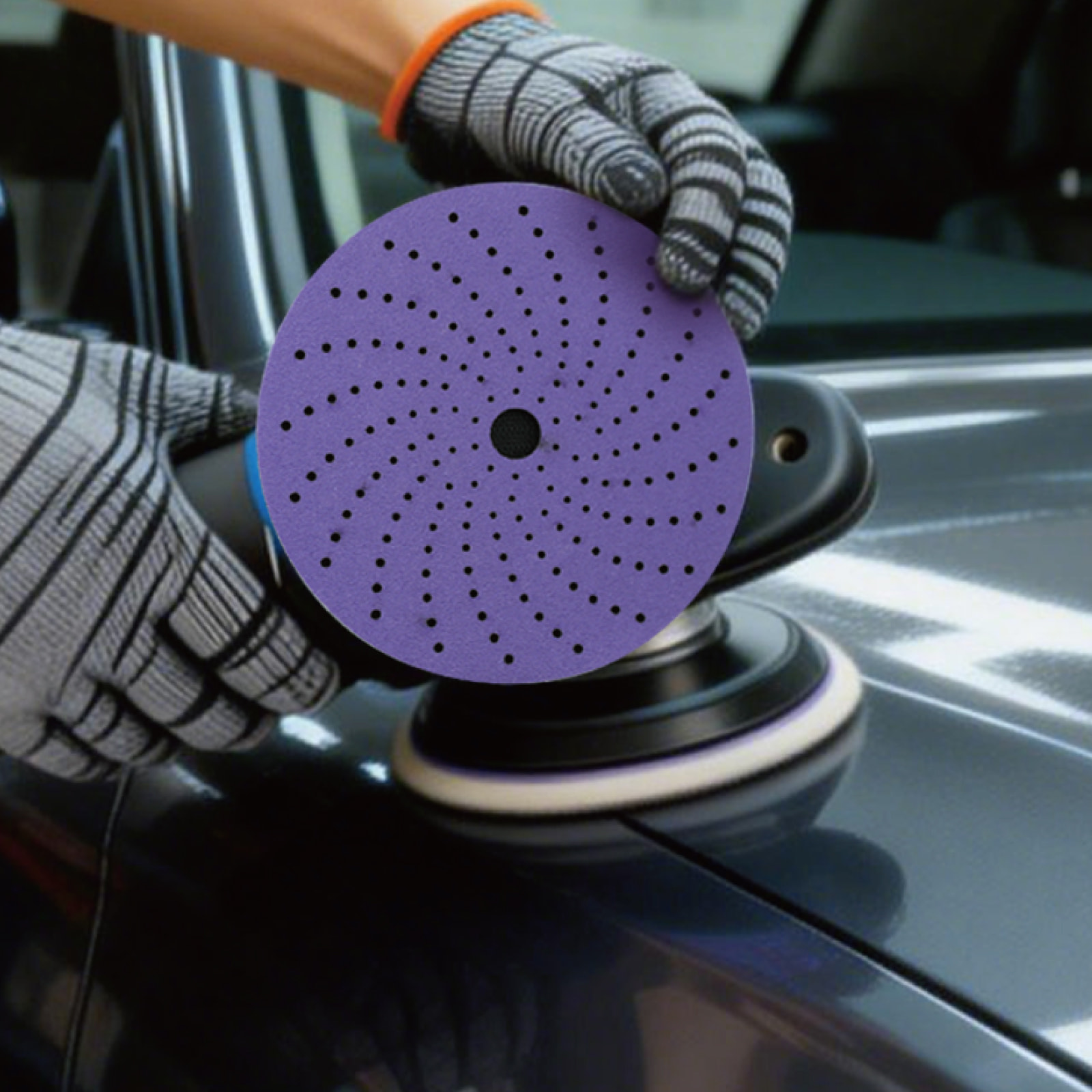It uses ceramic abrasive grains, and the spiral-designed holes improve the discharge of polishing debris, reduce clogging, and enhance cutting performance and polishing durability.
